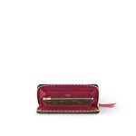Bên trong túi được lót da màu rượu vang (burgundy), gồm ngăn khóa “love letter” dưới nắp đầu tiên, một ngăn trượt “outer” dưới nắp thứ hai, cùng khoang chính với hai ngăn mở được ngăn cách bởi một ngăn nhỏ dành cho “thỏi son”.
